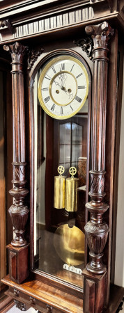 Fotogalerie: Nástěnné secesní pendlové tří-závažové bicí hodiny